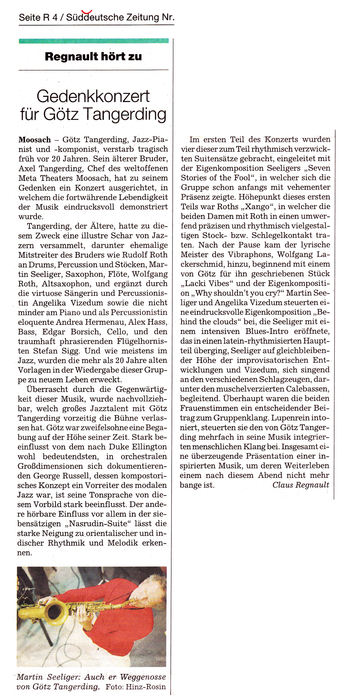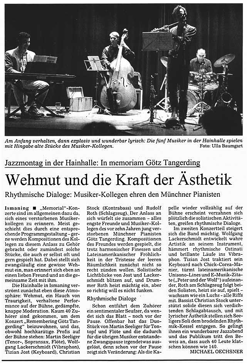 MARTIN SEELIGER: Götz Tangerding Memorial - SZ 10.10.2001